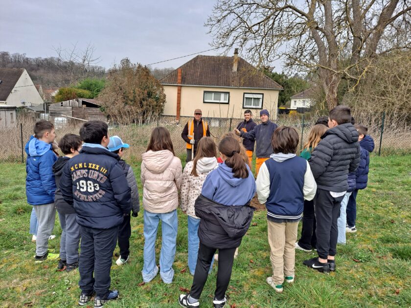 C’est avec entrain que les élèves d’une classe de l’école des Marronniers ont planté deux pommiers à  l’arrière de la cour d’école.